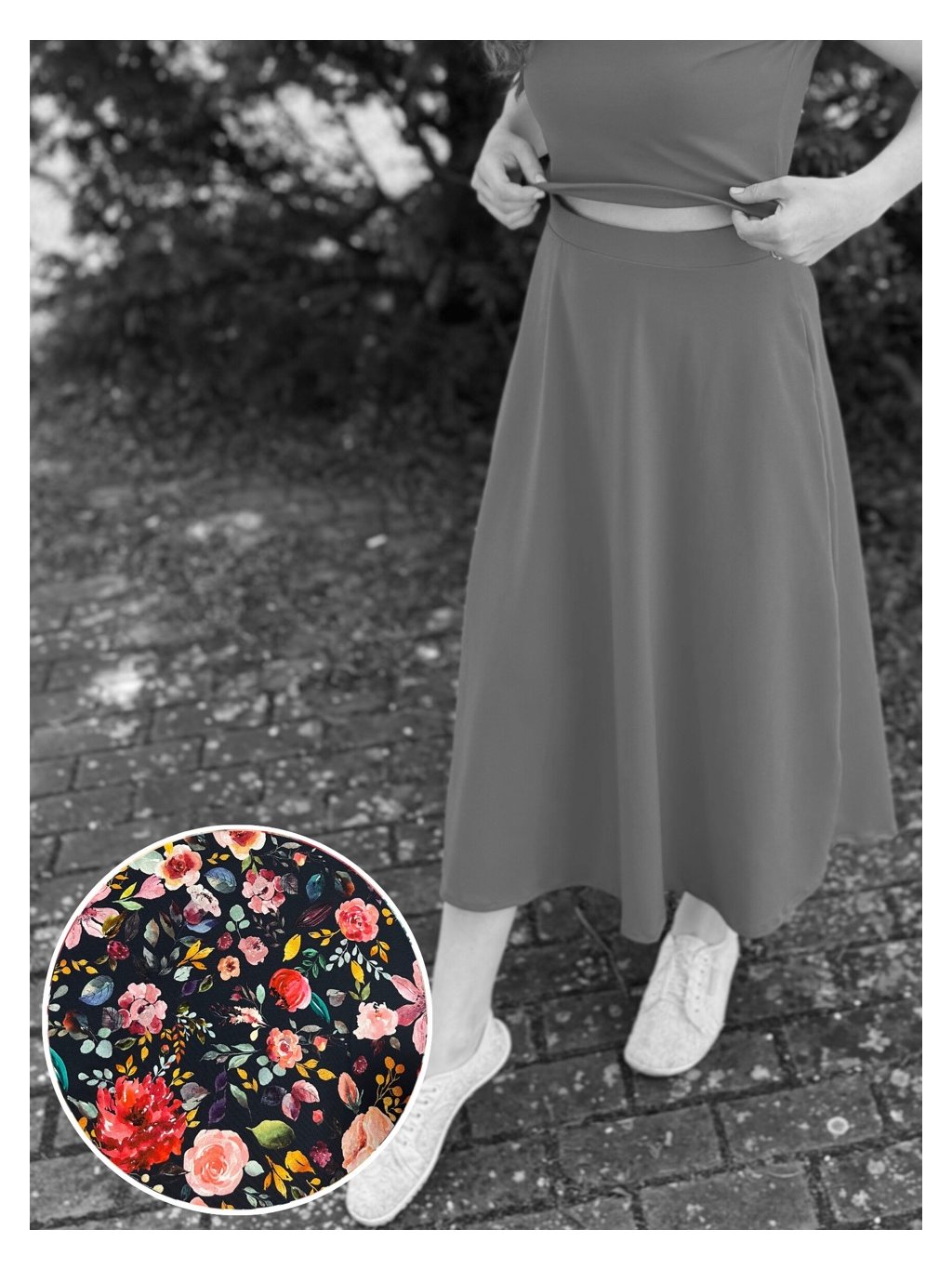 Sukně Alma akvarelové květy na tmavé | biobavlna