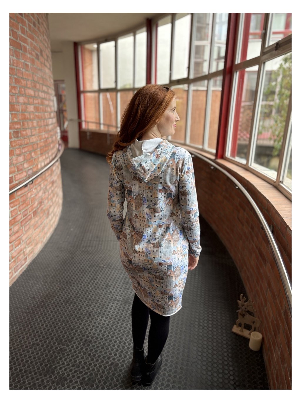 Manžetkové rukávy a velká kapuce minimalisticky dozdobí celý ležérní vzhled.