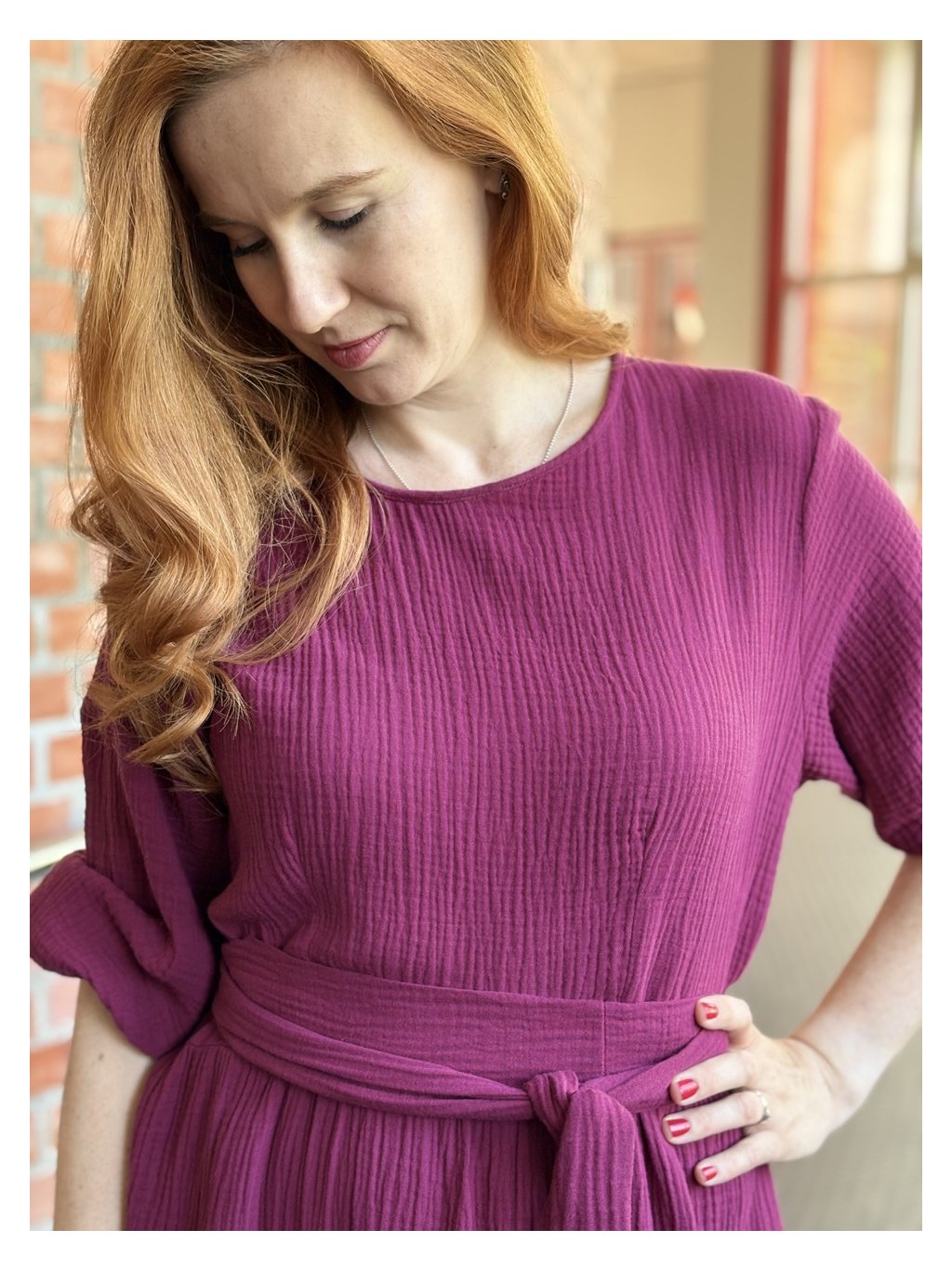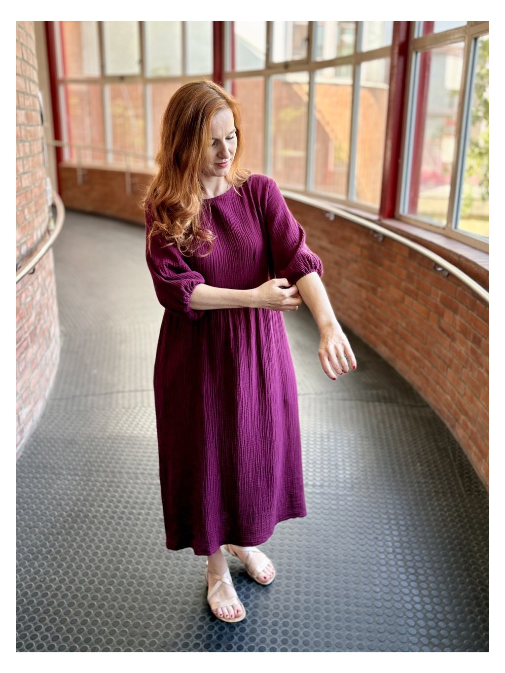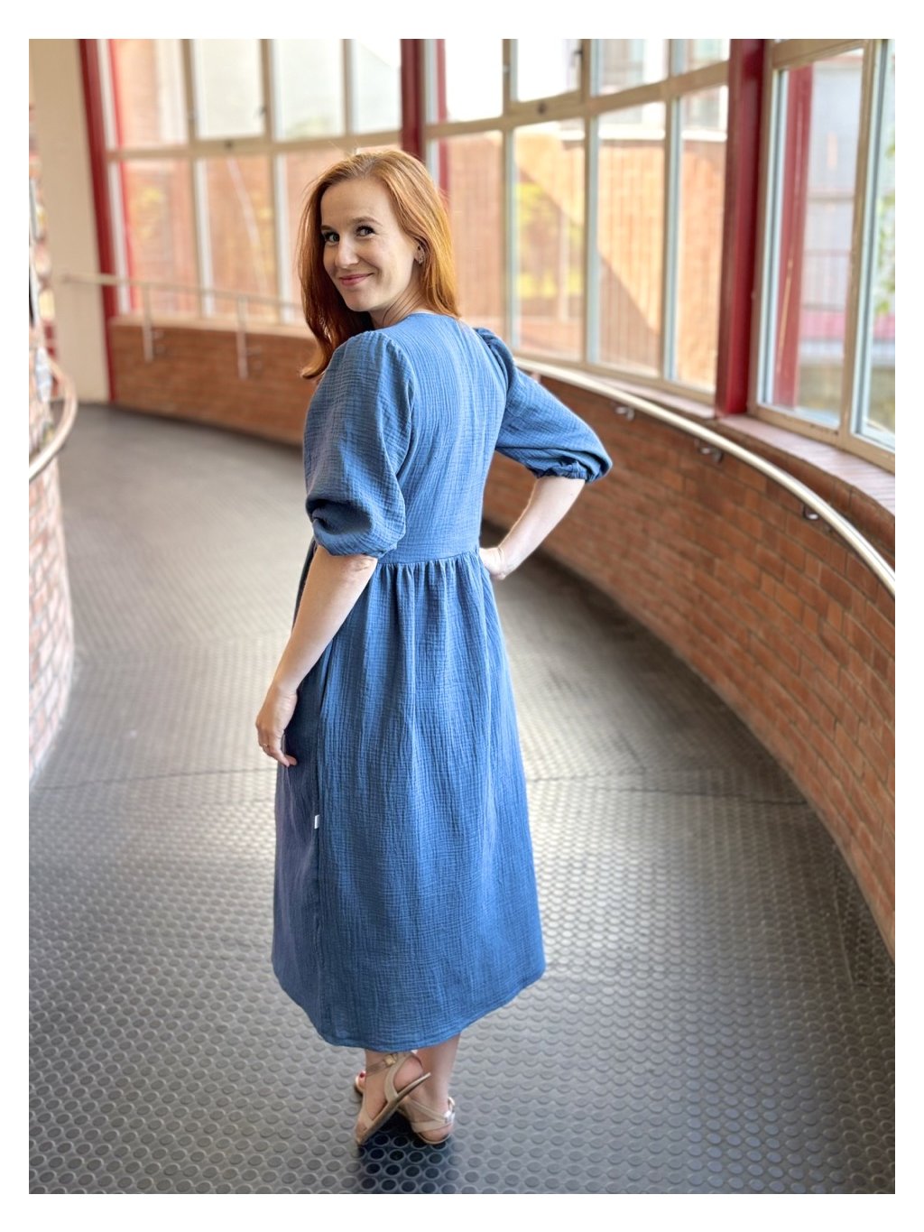 Vzdušné šaty Lara, šité z lehkého organického mušelínu s praktickými detaily, které vás nadchnou. Volný střih se záševky krásně splývá, široký pásek zvýrazní pas, pokud budete chtít, a volné podkasané rukávy dodávají modelu vzdušnost, stejně jako tato midi délka. A kapsy? Ty samozřejmě nechybí – protože styl a pohodlí jdou u nás ruku v ruce, stejně jako udržitelnost. ♡