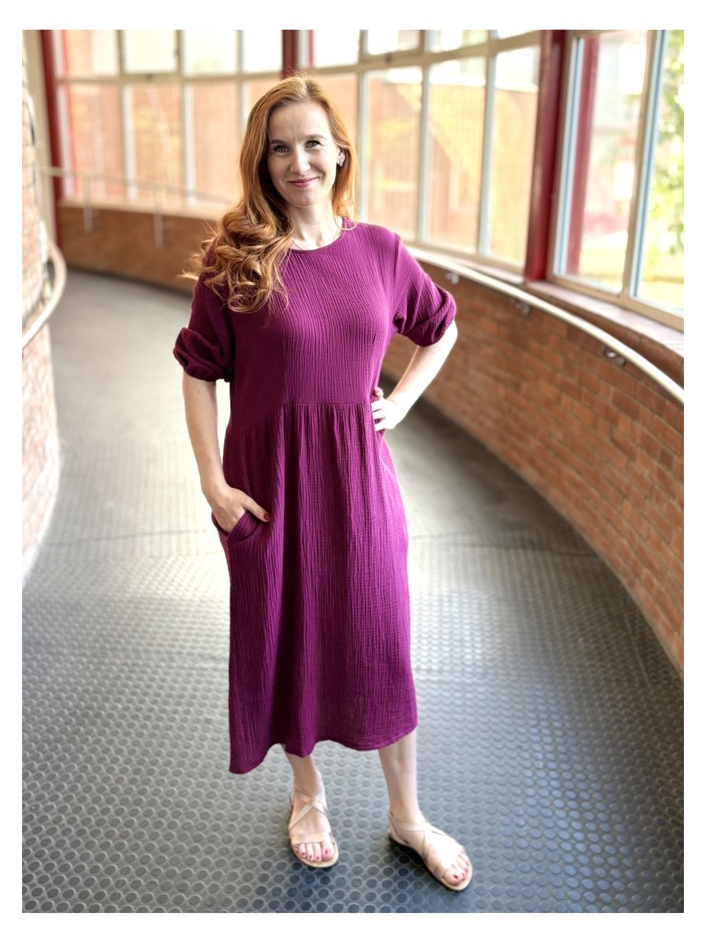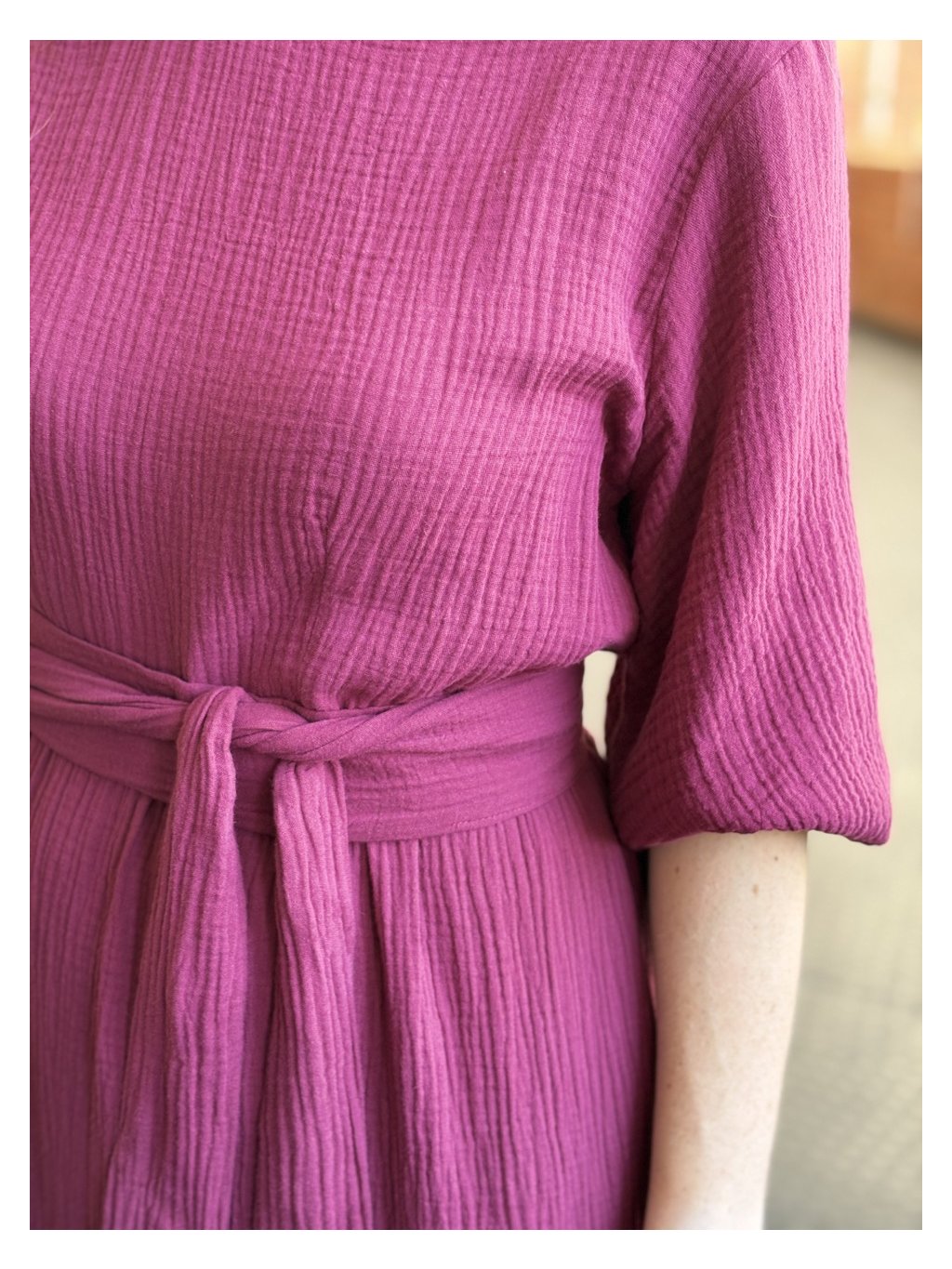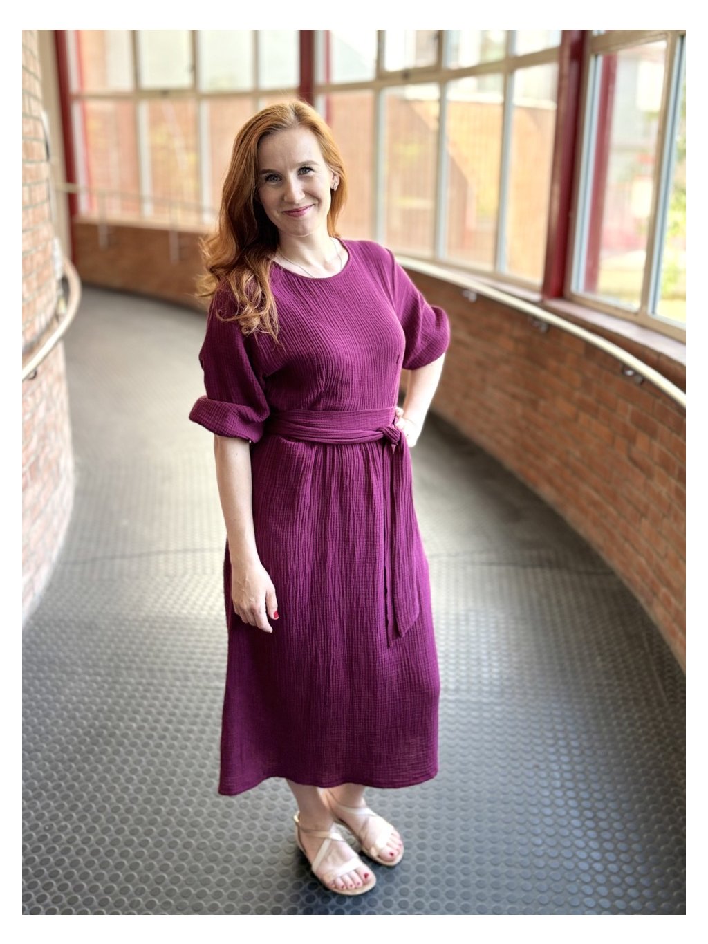 Vzdušné šaty Lara, šité z lehkého organického mušelínu s praktickými detaily, které vás nadchnou. Volný střih se záševky krásně splývá, široký pásek zvýrazní pas, pokud budete chtít, a volné podkasané rukávy dodávají modelu vzdušnost, stejně jako tato midi délka. A kapsy? Ty samozřejmě nechybí – protože styl a pohodlí jdou u nás ruku v ruce, stejně jako udržitelnost. ♡