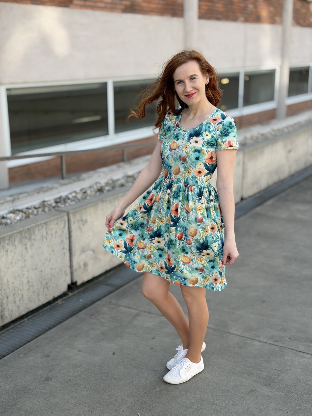 Délka šatů u všech velikostí (měřeno od ramenního švu po dolní okraj) je cca 95 cm a lze na přání mírně upravit, prosím kontaktujte mě předem, ať už tady nebo na sociálních sítích. :-)