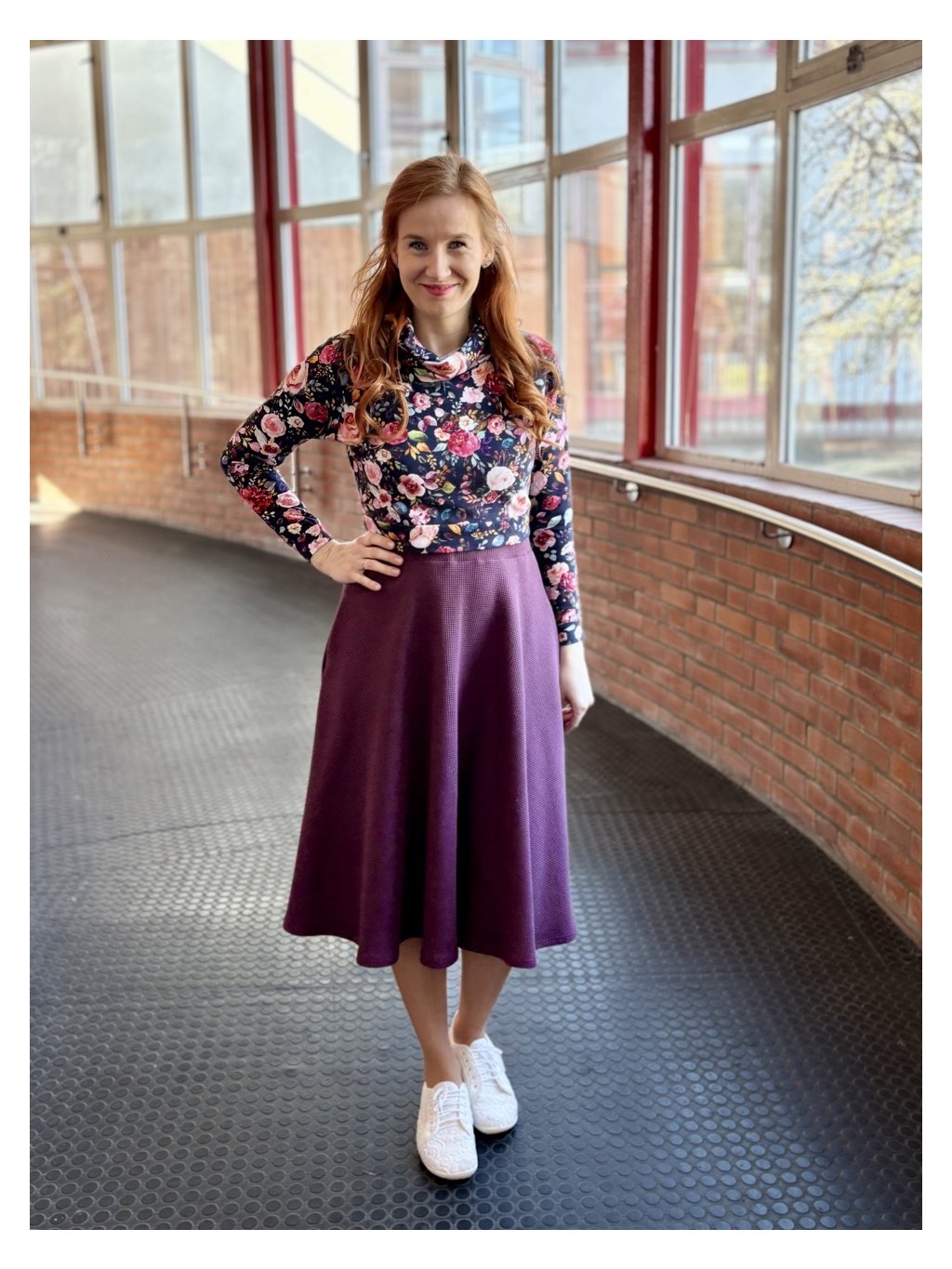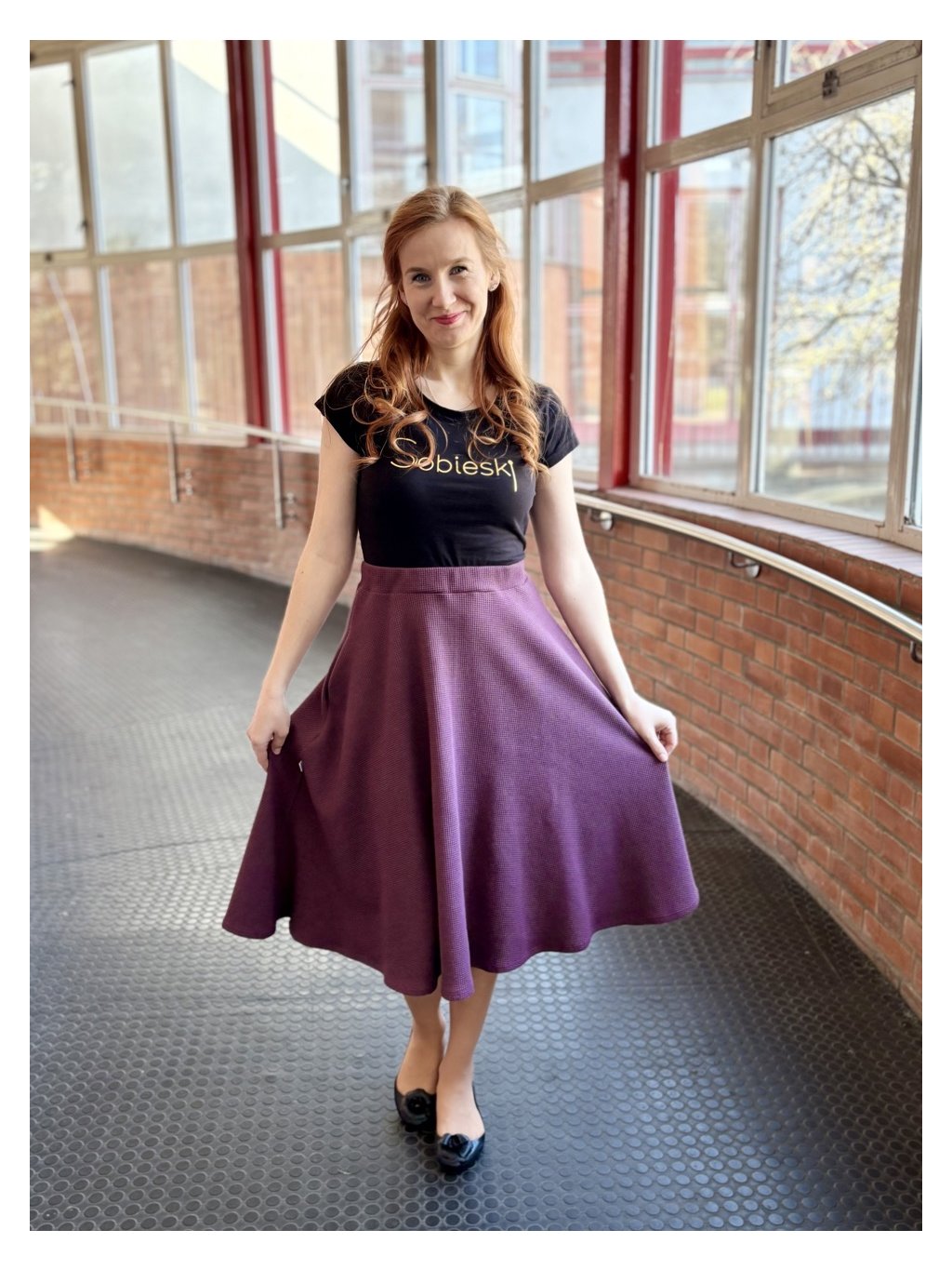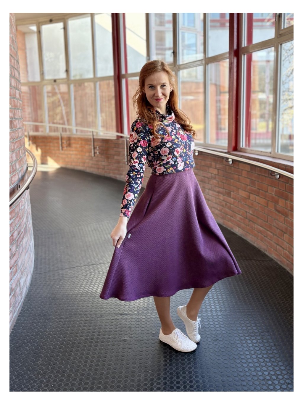 Naše půlkolová sukně z jemné bio bavlněné teplákoviny krásně splývá, při chůzi se lehce pohupuje a díky praktickým kapsám je nejen krásná, ale i praktická, jak je u nás zvykem. Stačí ji vzít k teniskám a tričku pro pohodový den, nebo k topu a balerínám/lodičkám, když chcete působit o něco elegantněji.