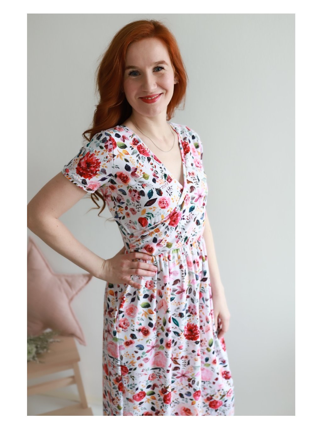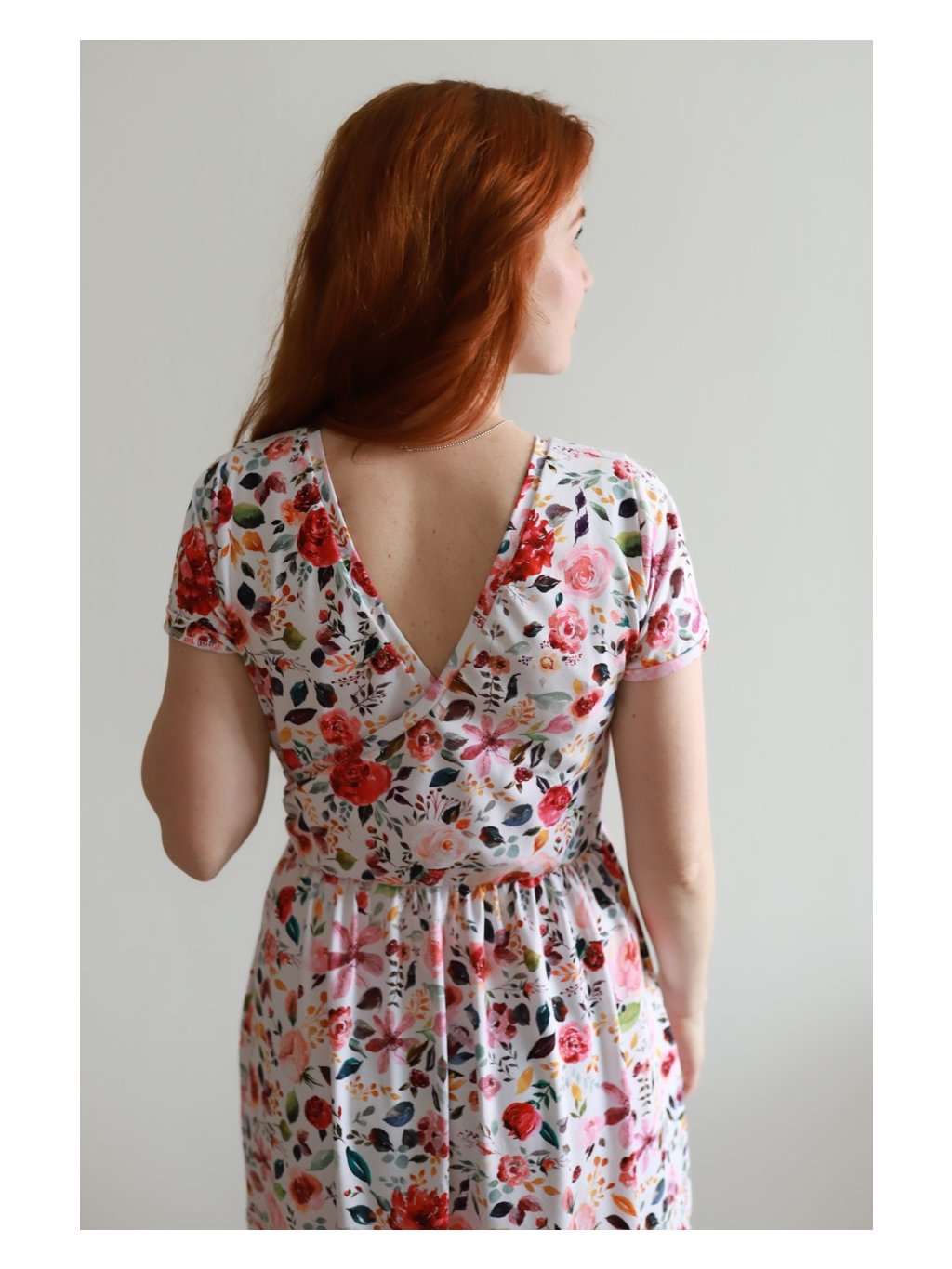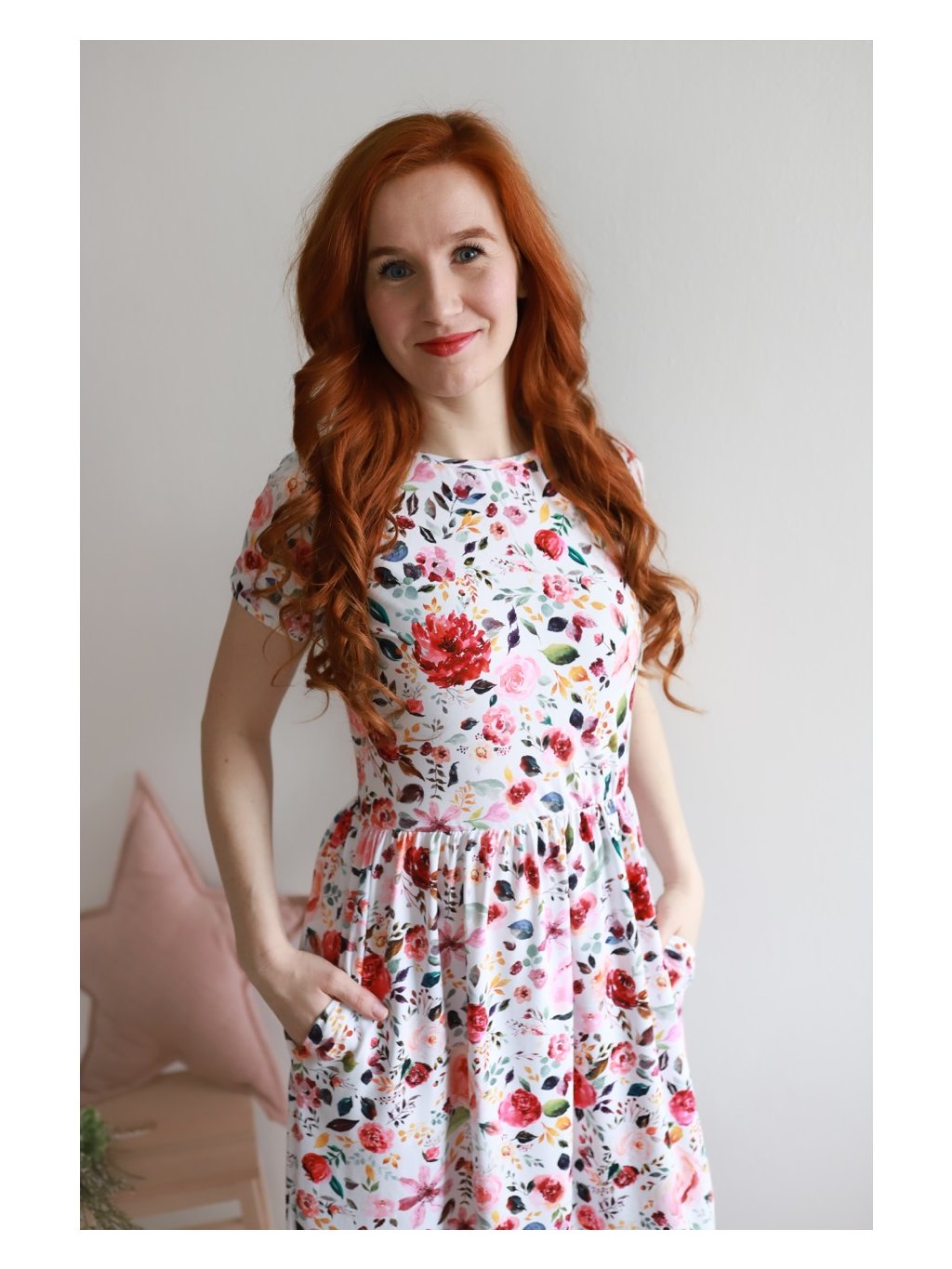 Oboustranné šaty Malia - akvarelové květy | biobavlna