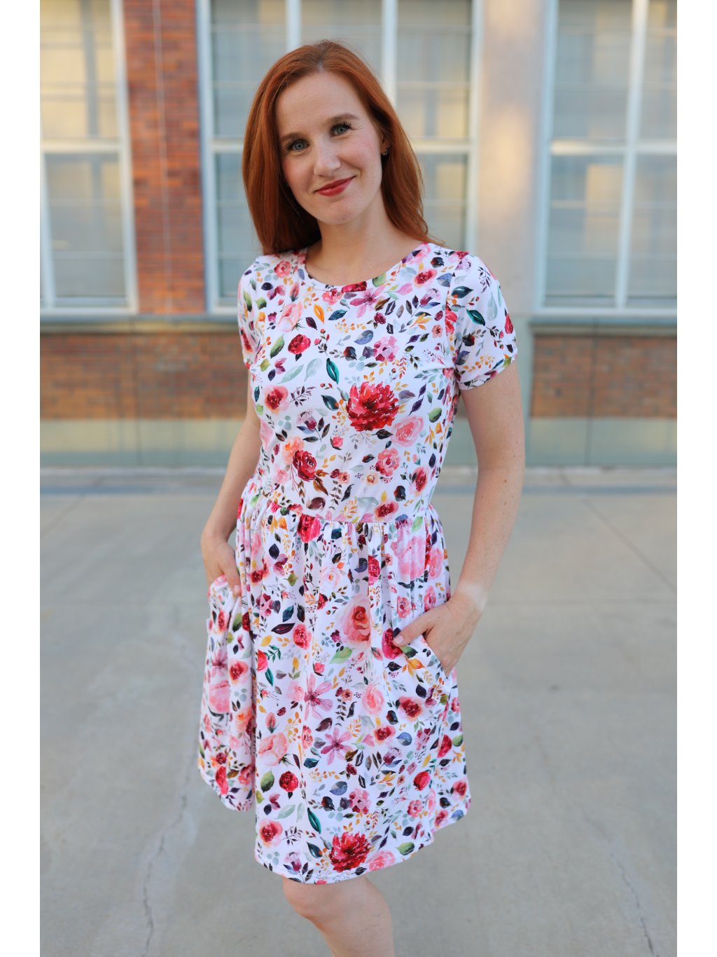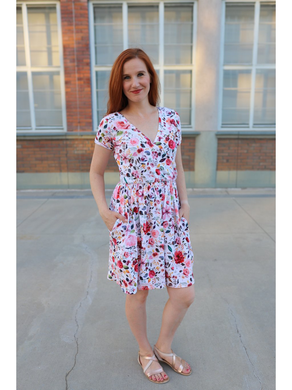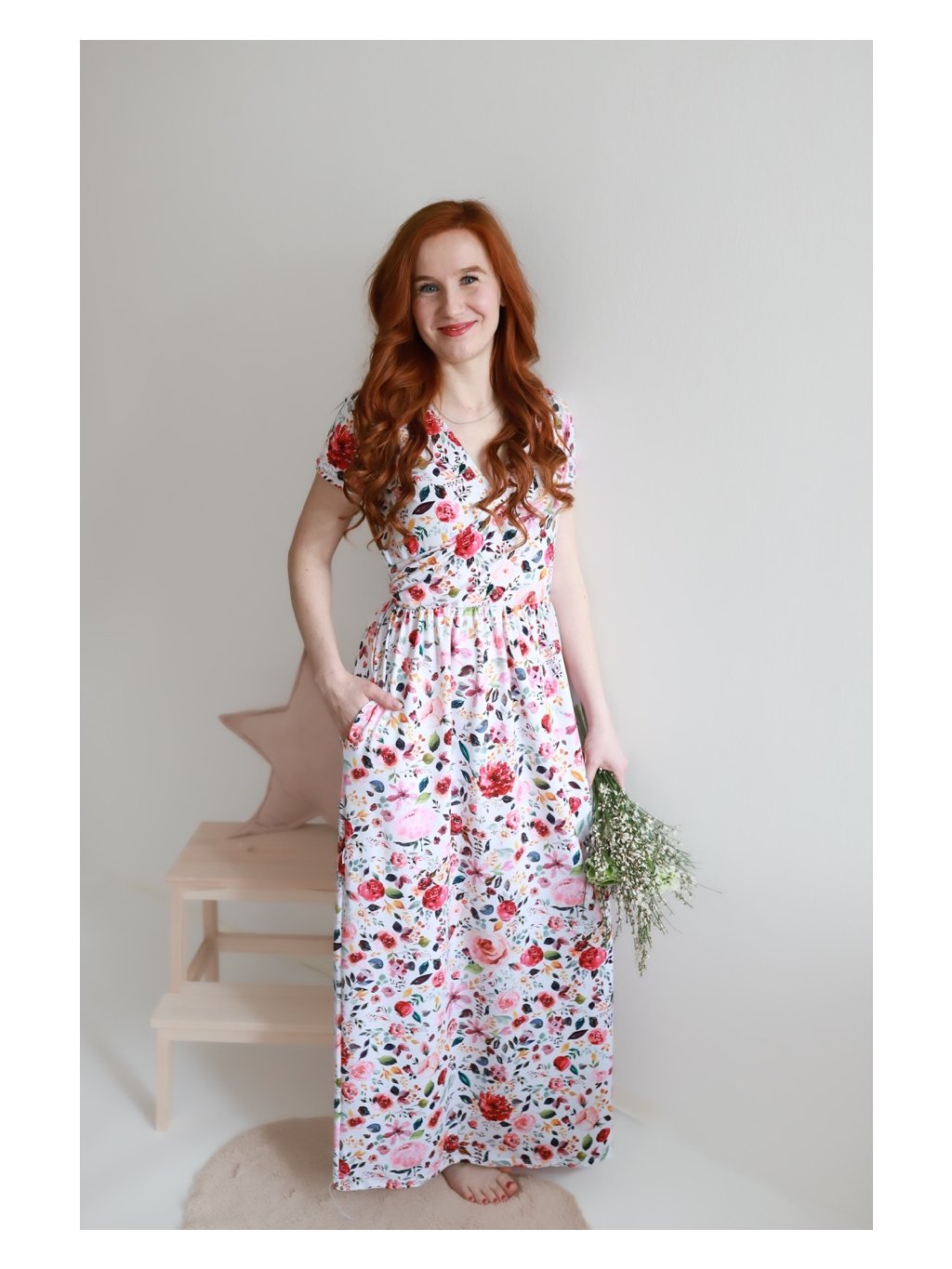 Oboustranné šaty Malia - akvarelové květy | biobavlna