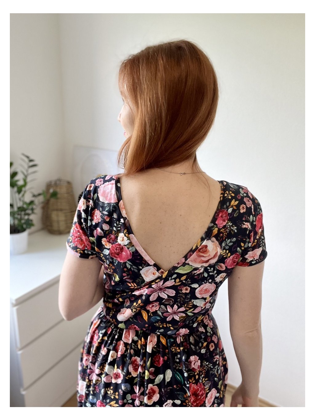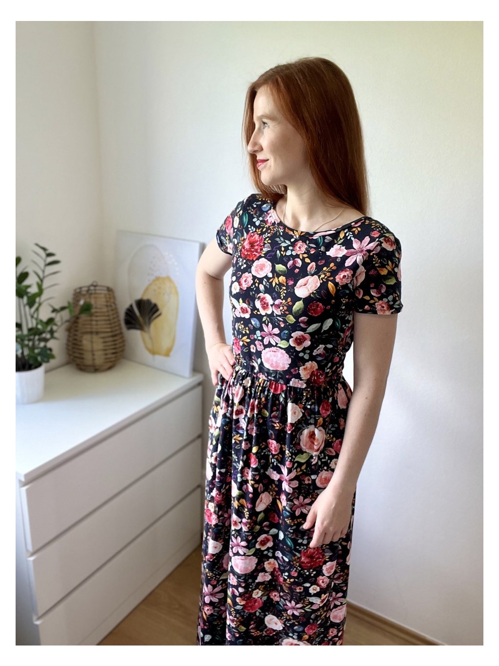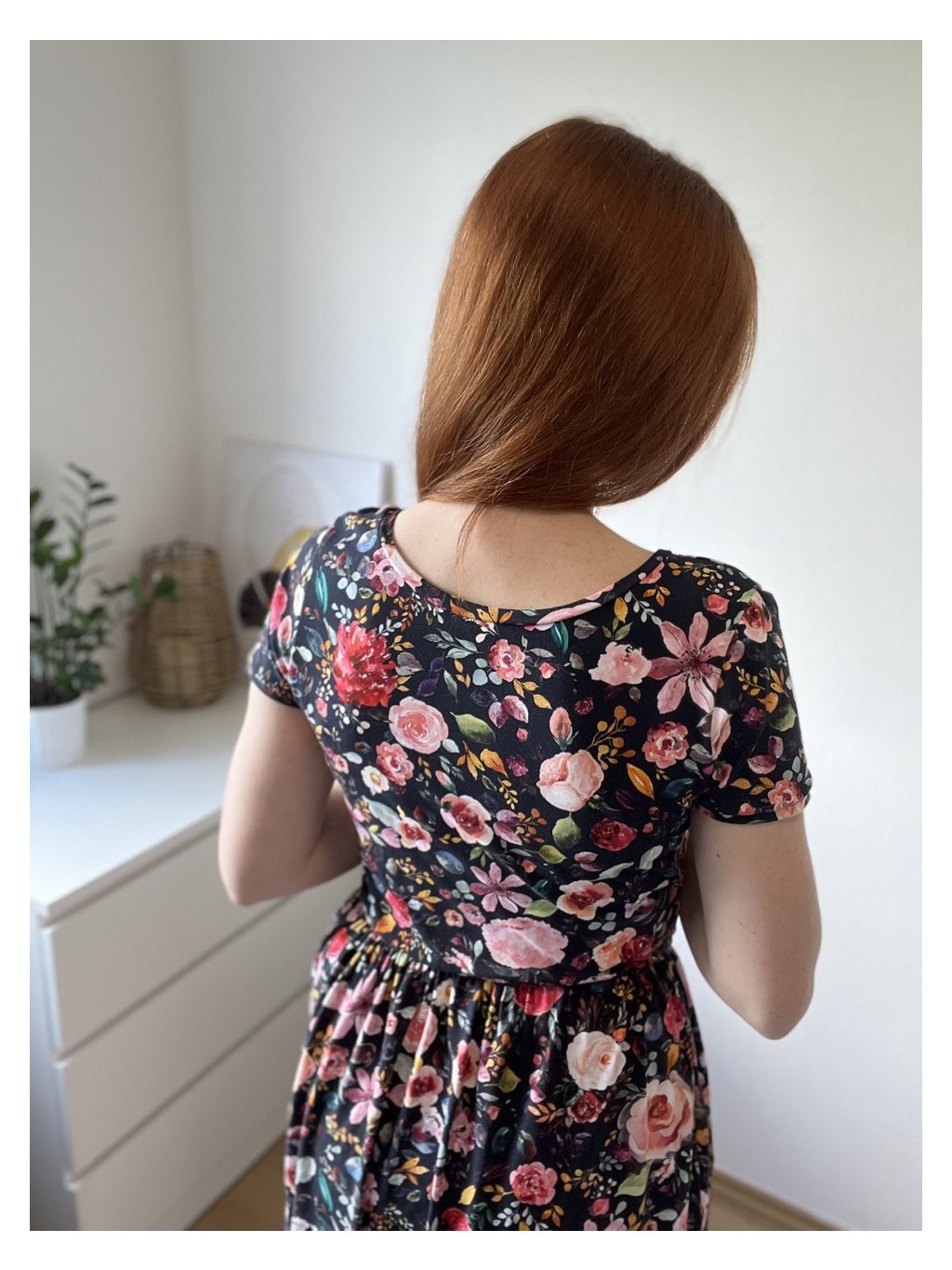 Oboustranné šaty Malia - akvarelové květy na tmavé | biobavlna