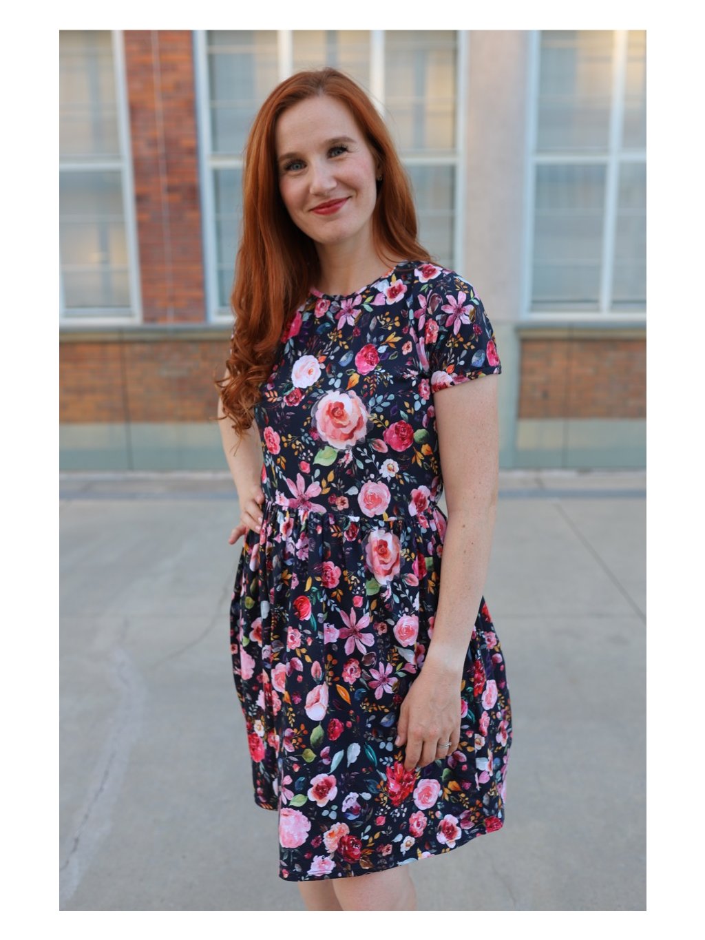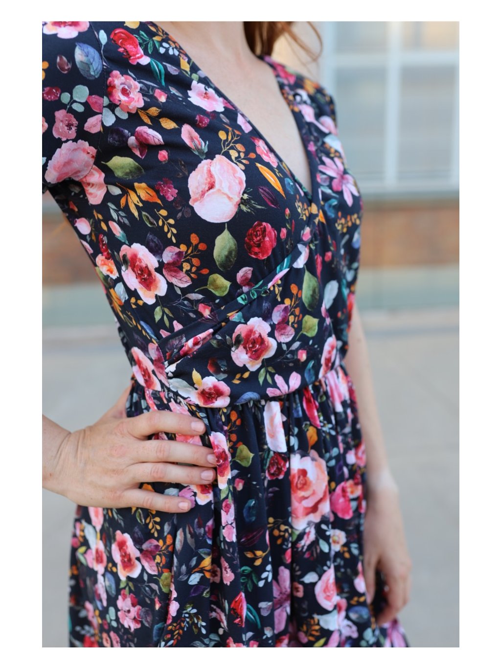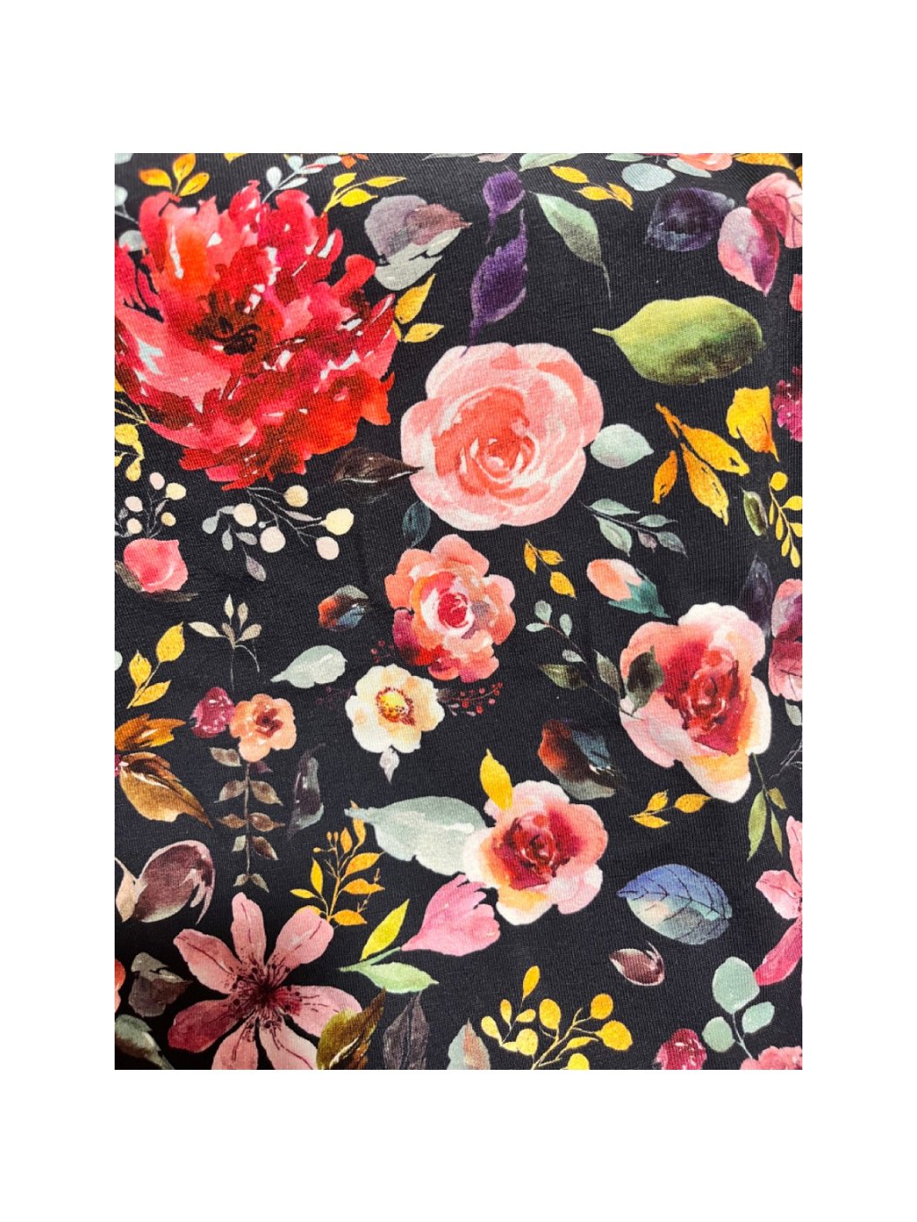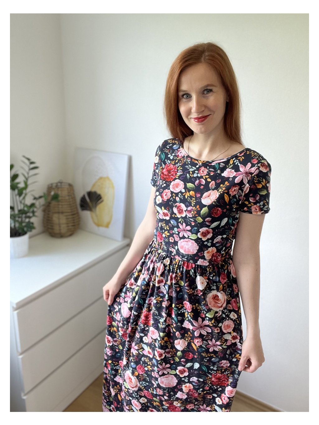 Oboustranné šaty Malia - akvarelové květy na tmavé | biobavlna
