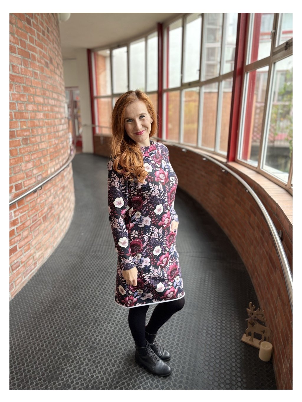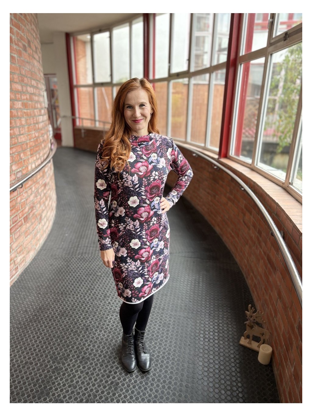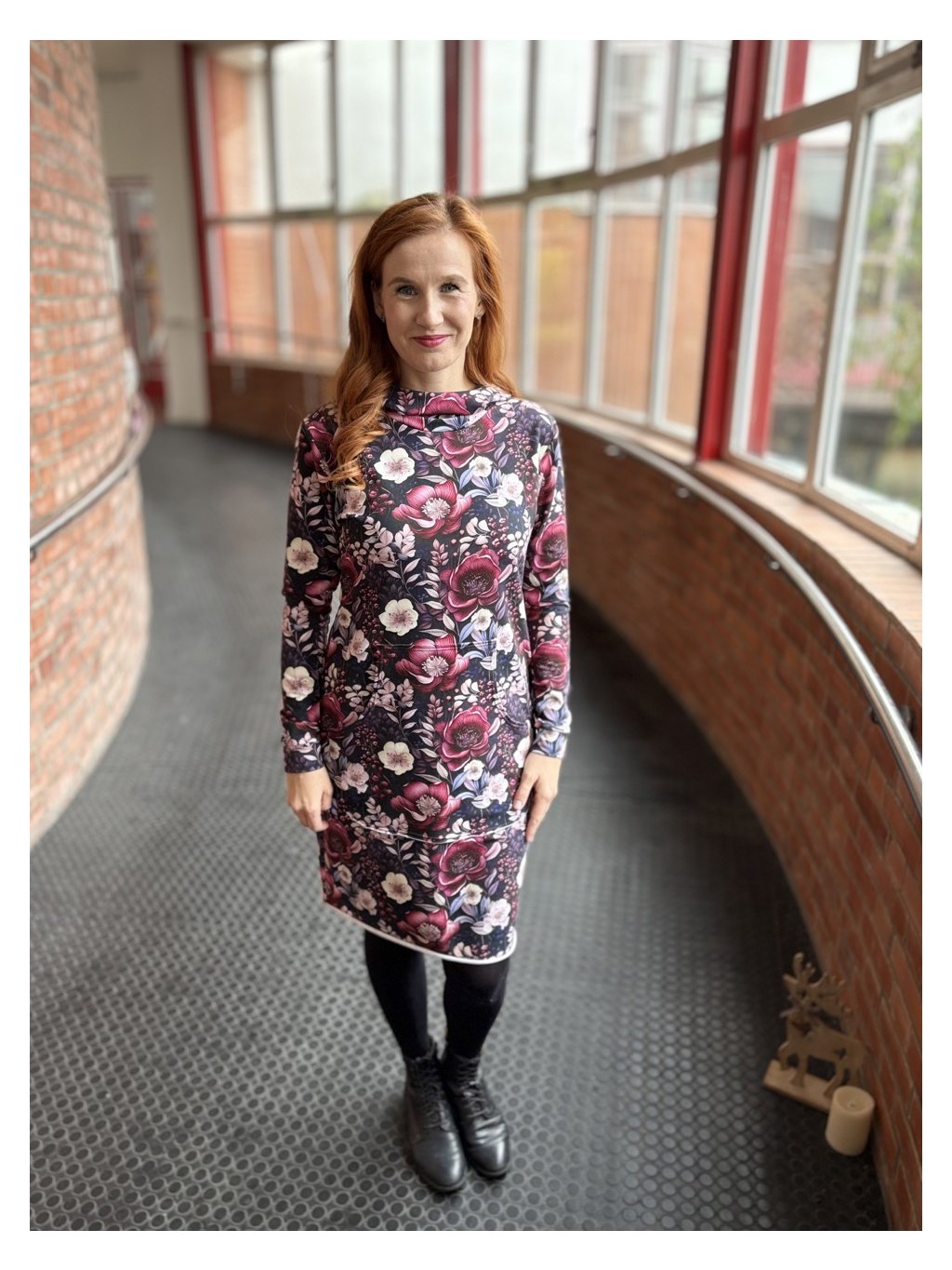 Mikinošaty Darja jsou z tenké teplákoviny = v limitované kolekci jsou to 3 vzory (romance, fialové vločky a domečky). Výjimečně zde najdete i možnost nechat si je ušít z úpletu (tzn. látka má menší gramáž) - z krásné perníčkové látky.