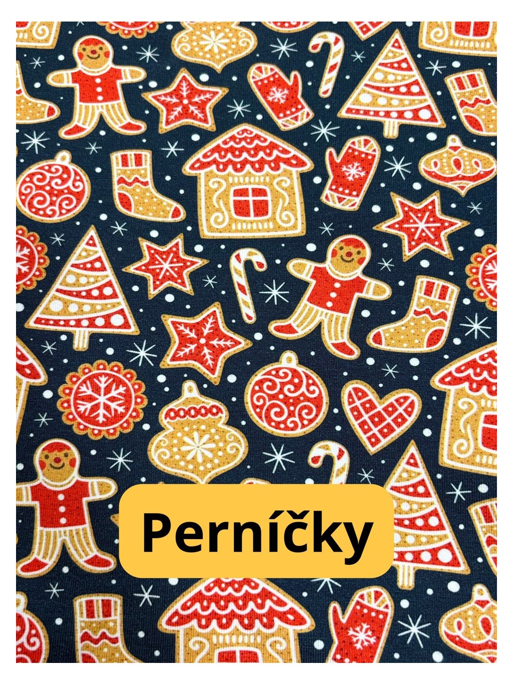 Materiál je extra kvalitní french terry teplákovina (kromě perníčků, to je úplet) s Oeko-Tex certifikátem třídy 100 (certifikováno i pro děti do 3 let).