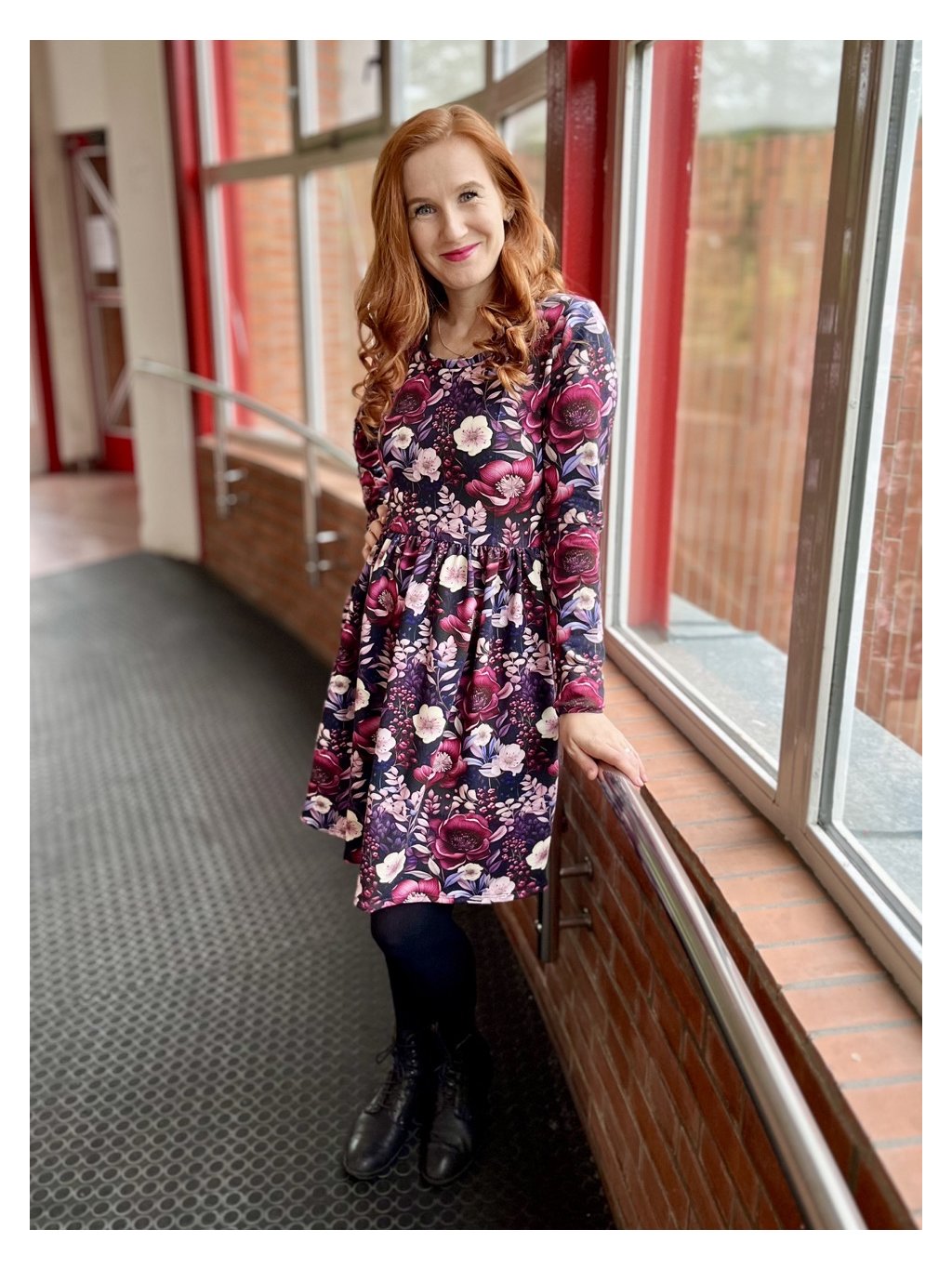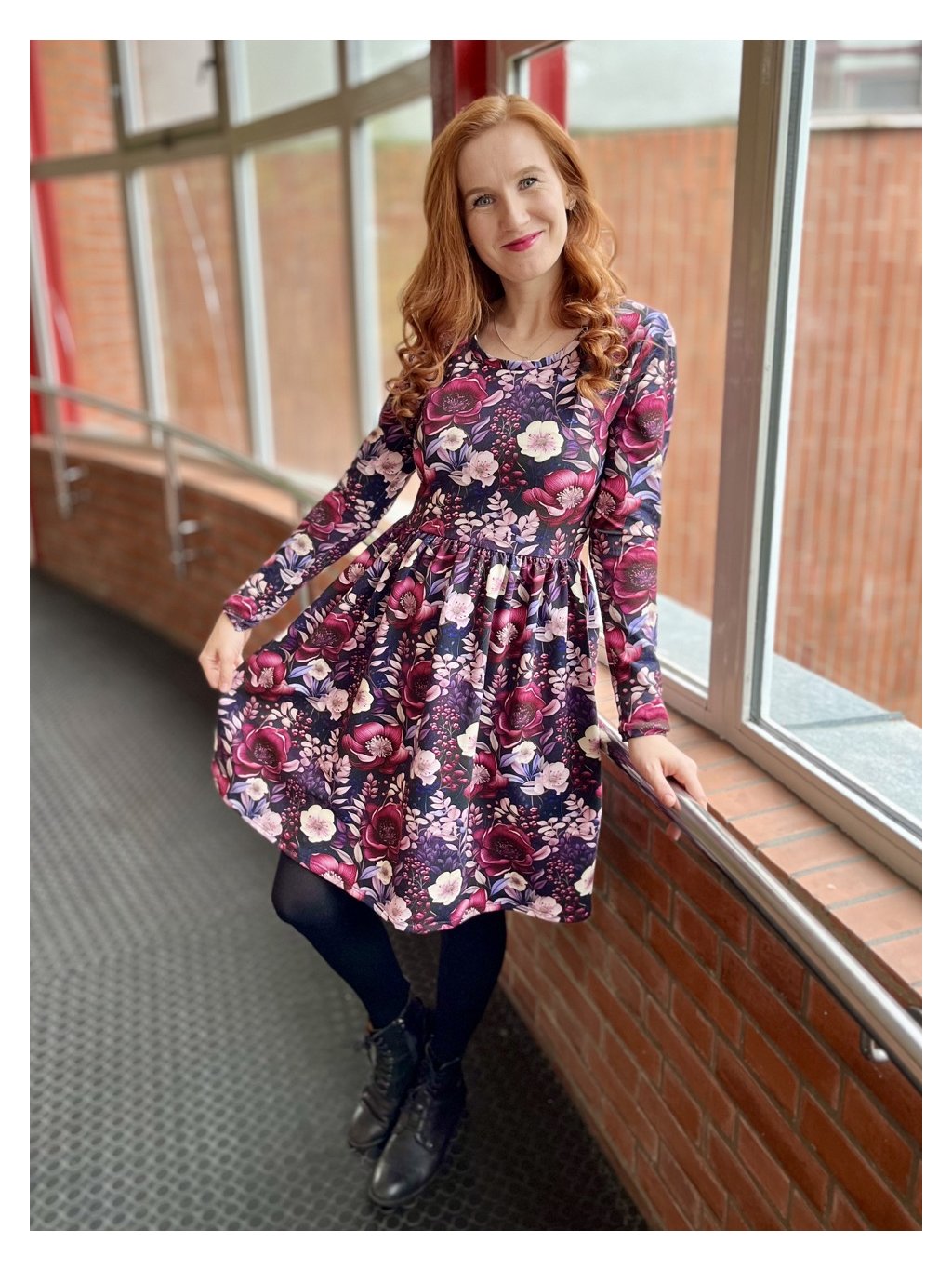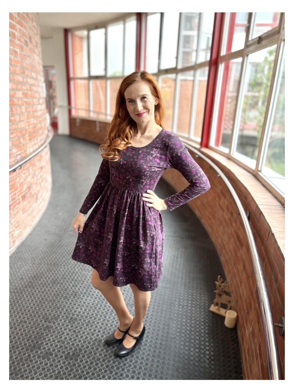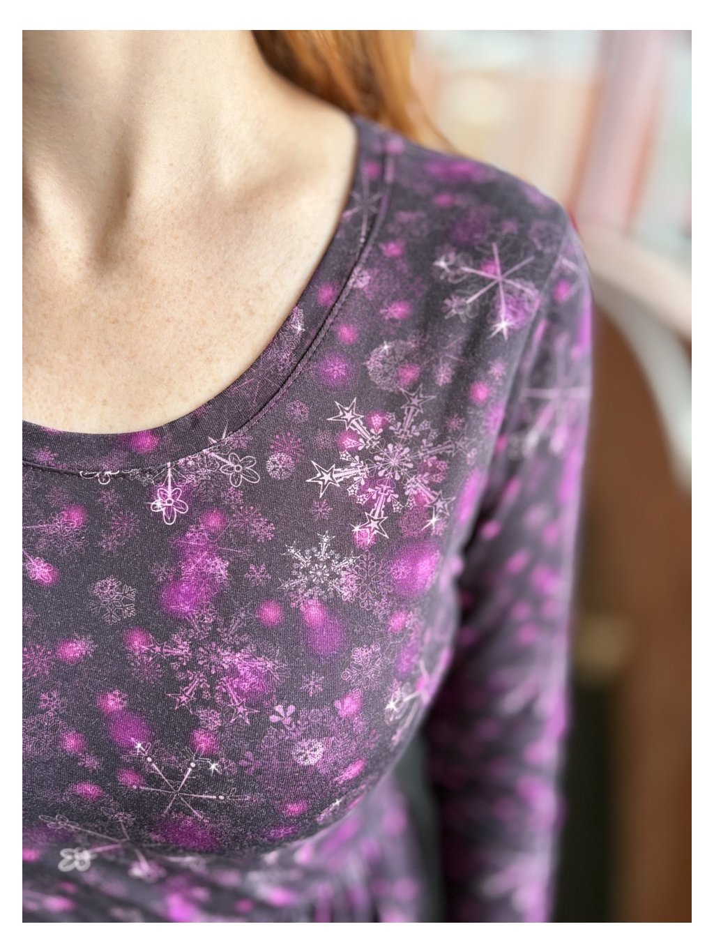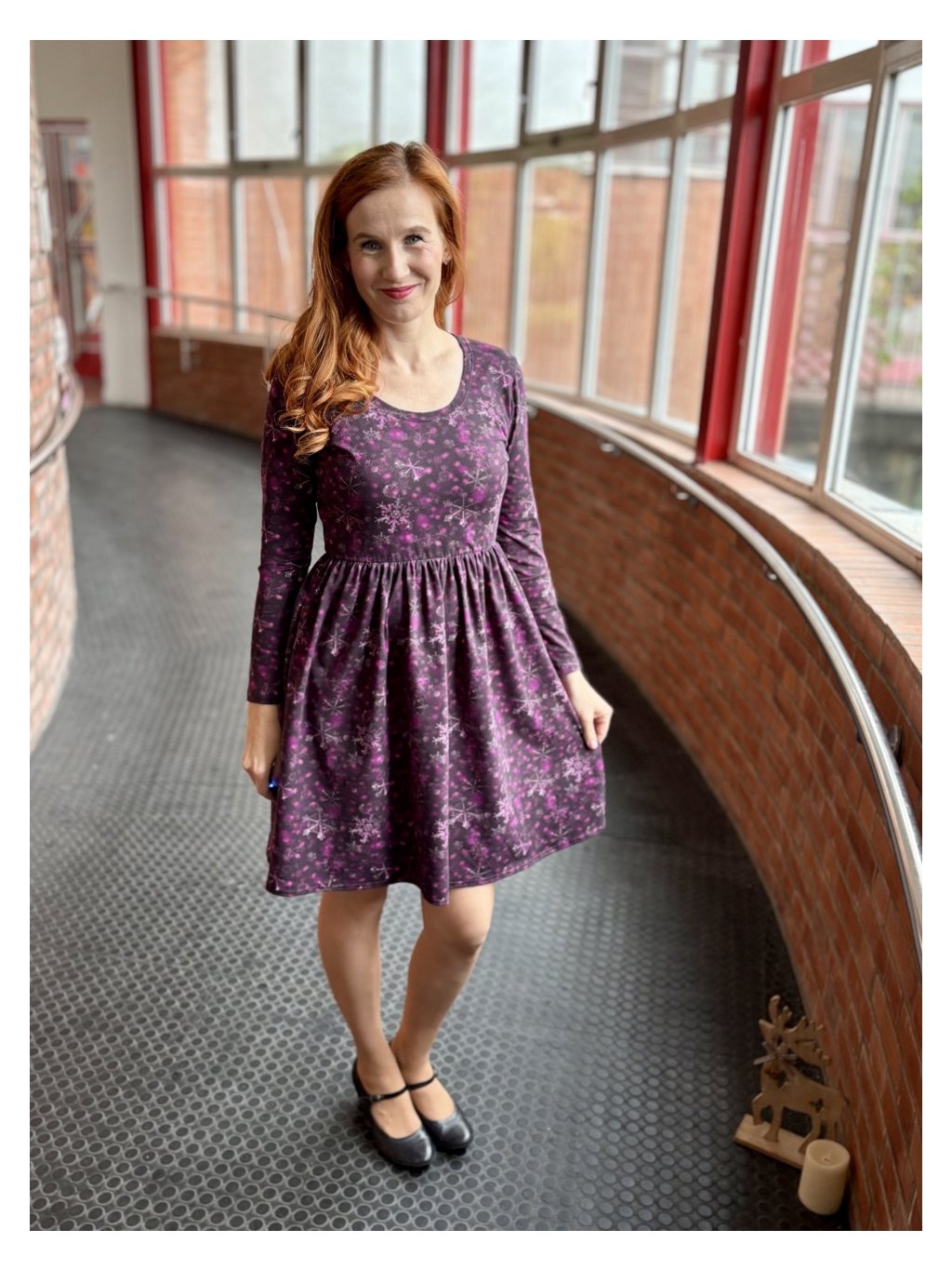 Šaty Maja v "zimní" verzi jsou z tenké teplákoviny = v limitované kolekci jsou to 3 vzory (romance, fialové vločky a domečky). Podívejte se taky na lehčí verzi z úpletu.