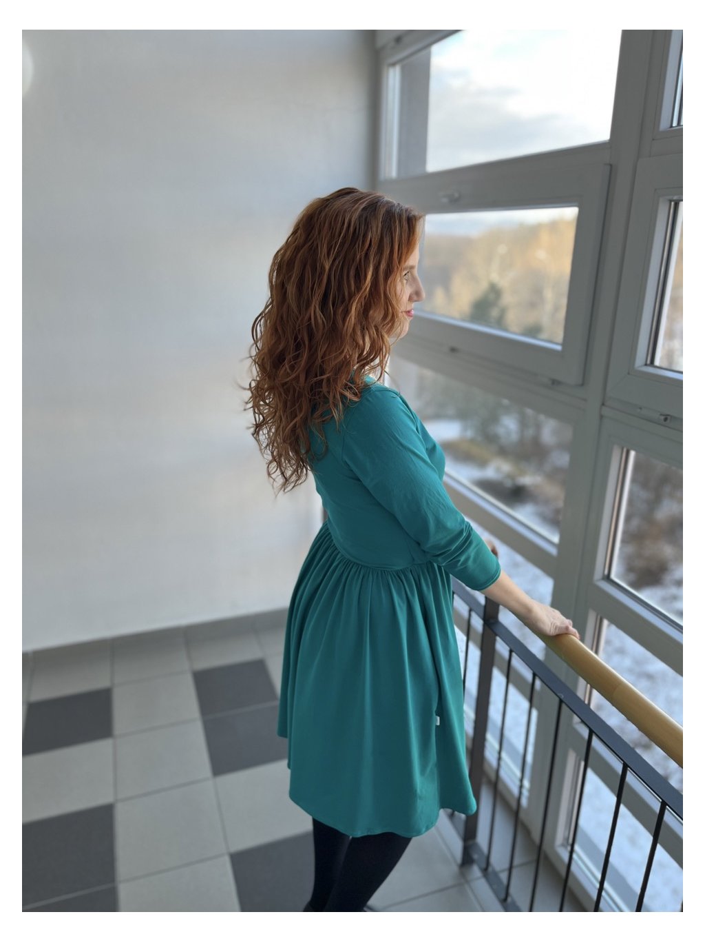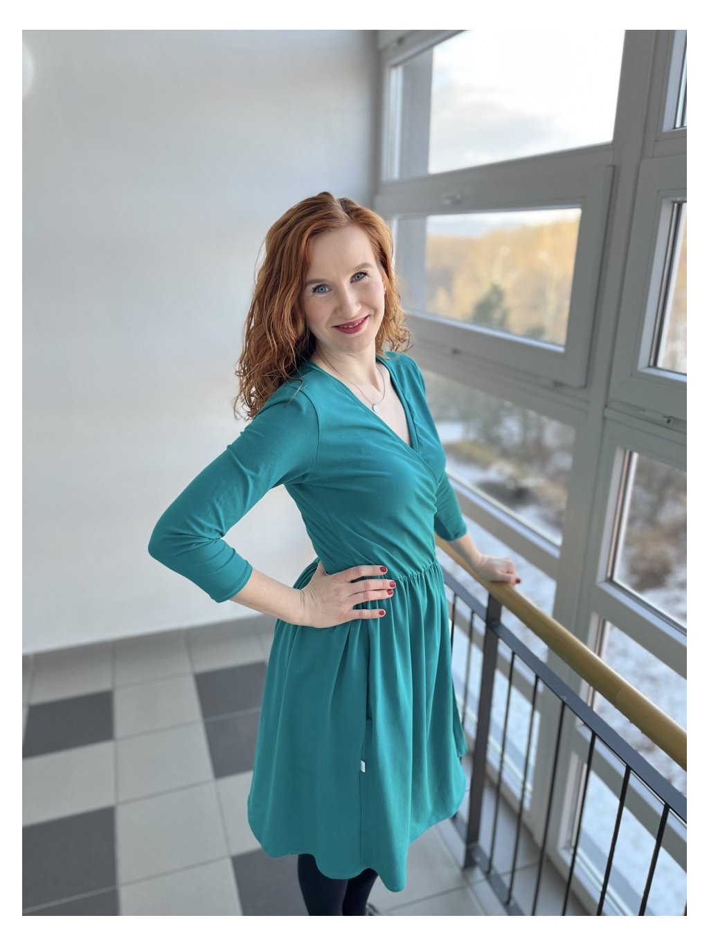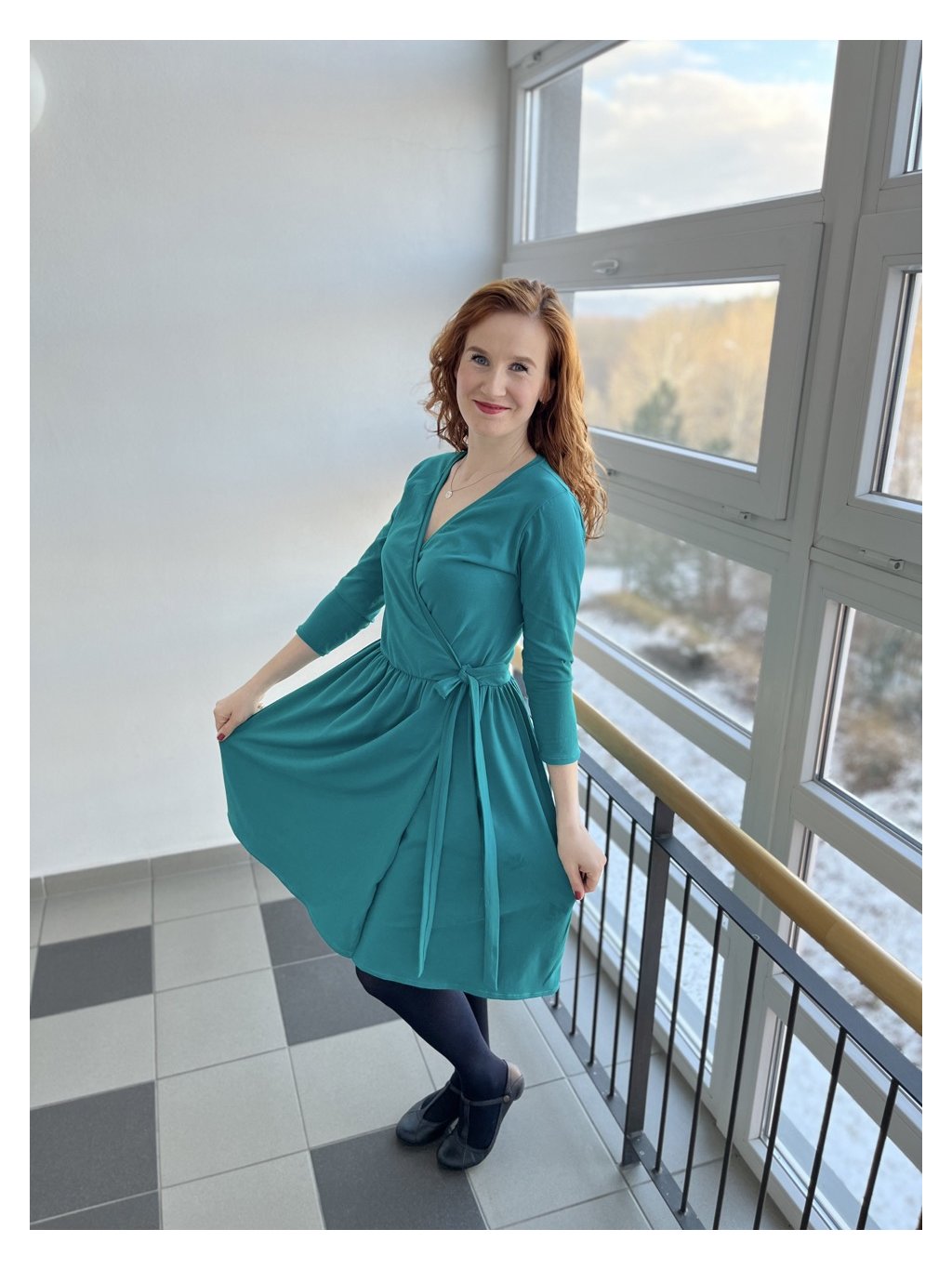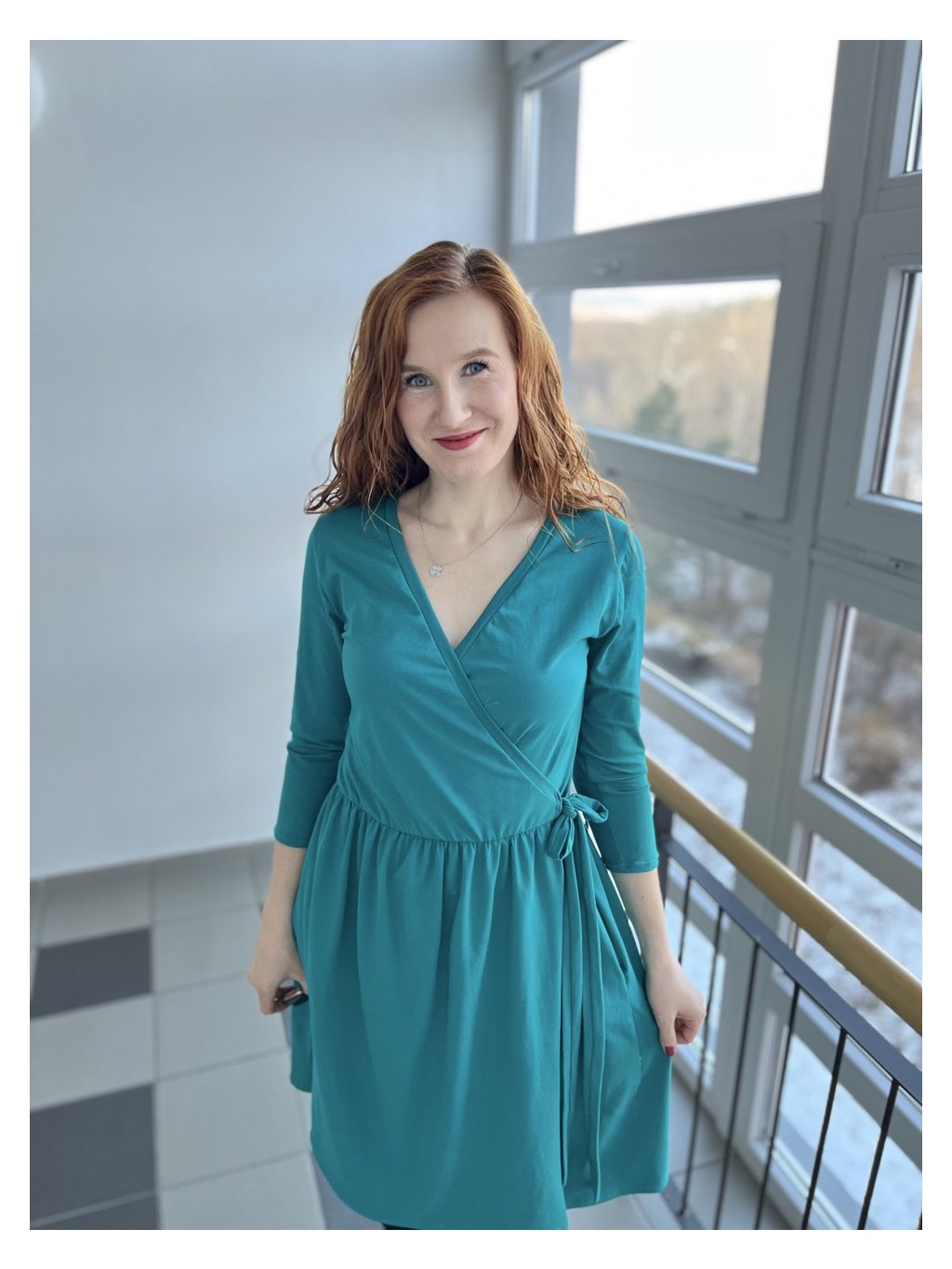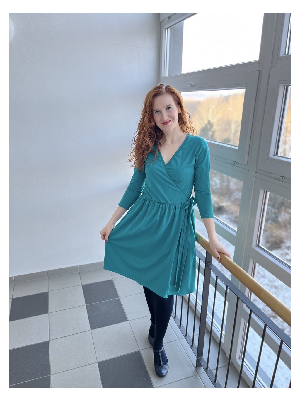 Zavinovací řasené šaty - tyrkysové | biobavlna