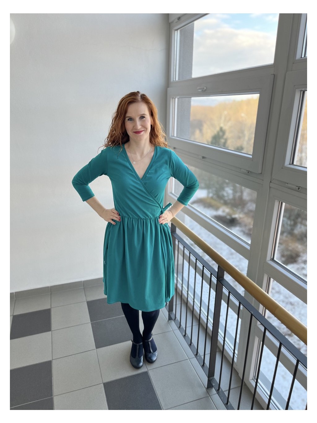 Šaty mají "falešné" zavinutí - můžete si je zavázat uvnitř (schované) i venku podle libosti.